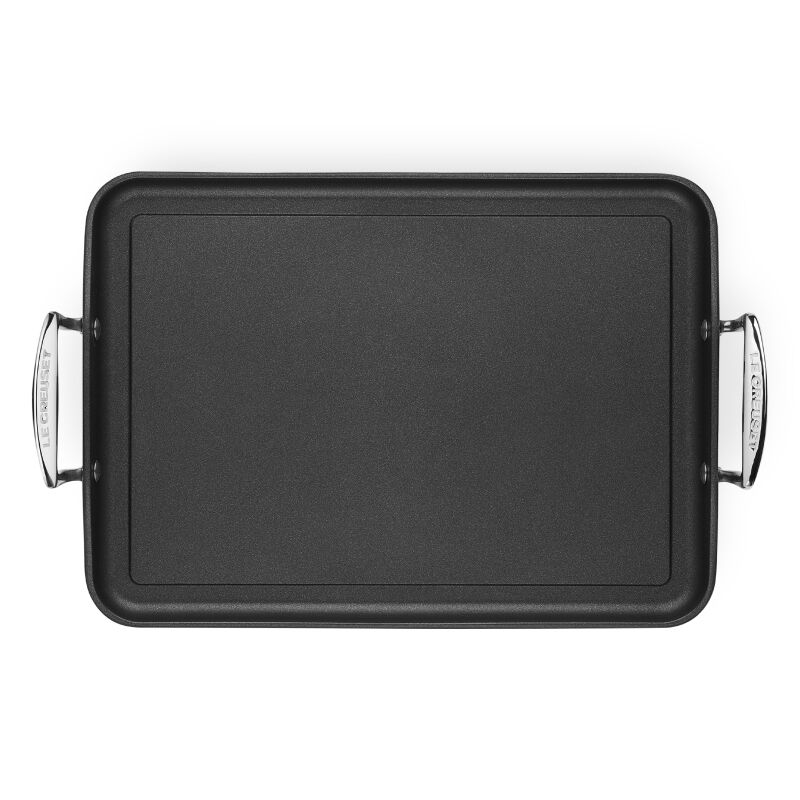 A versatile kitchen staple, the Rectangular Griddle Pan features a textured triple-reinforced coating that is ideal for browning and searing, with or without oil, and easily wipes clean. Safe for dishwasher, oven and metal utensils, Le Creuset¡¯s non-stick is the choice for mastering flavorful meals from stove to oven to table.
